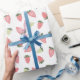 Morangos cor-de-rosa e novos em branco! Papel de embrulho divertido para amantes de morango lá fora!