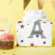 Celebrar o Dia da Bastilha e Paris com a Torre Eiffel e estrelas vermelhas e azuis.