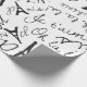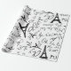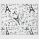 Um bonito papel de embrulho parisiense este design é ilustrado em um fundo branco, há os desenhos do escrevendo francês e da Torre Eiffel em preto. Personalize o seu hoje!