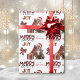 O padrão repetido neste belo papel de embrulho de Natal é uma imagem de um Cão-Touro-Touro marrom e branco vestindo um chapéu de Papai Noel vermelho e branco, com um travesseiro de xadrez de búfalo preto e vermelho atrás dele, e um pacote de presente de coordenação com uma fita de ouro ao seu lado. Há também um arco de xadrez de búfalos e o texto correspondente que diz "JOY". O texto de xadrez de búfalos vermelho e preto estilizado diz MERRY CHRISTMAS", e sua própria assinatura está em dois campos para você personalizar.