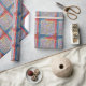 This wrapping paper features a vibrant geometric pattern inspired by traditional handcrafted needlework. The design showcases an eclectic mix of triangles and squares in a sophisticated palette of deep navy, burnt orange, and warm neutrals. Intricate overlapping shapes and contrasting colors create a dynamic visual texture reminiscent of a vintage heirloom. This premium stationery provides a stylish way to add a classic aesthetic with a modern, artistic flair to any gift or craft project.
