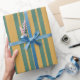 Papel De Presente Traditional Stripe Pattern Teal Green and Mustard