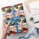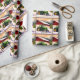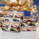 O trator verde favorito de um agricultor está estacionado na frente de um celeiro vermelho na neve.