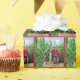 Trator de fazenda vermelha e galo em um campo de milho. A cor vermelha de fundo pode ser alterada.