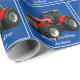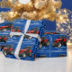 O trator vermelho favorito de um fazendeiro está sobre um fundo azul neste design divertido.