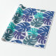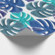 Papel De Presente Trendy Tropical Royal Blue & Aqua Monstera Folhas