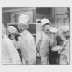 Três chefs segurando tortas por uma luta na cozinha, engraçada, retrô, bolo, comédia, pessoas, bengalê, três, nostalgia, bruxa, brincadeira, carregando, histórica, 1910-1940, b, bolsas, preto e branco, caucasianos, chefs, chefs whitesvintage, retrô, ilustração,