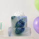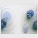 Um retrato interessante de três conchas marinhas em marinho com um fundo espiralado azul e branco sobre o tema. É apenas uma lembrança do oceano e dos seus maravilhosos tesouros.