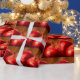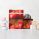 A vida de três maçãs vermelhas parcialmente visíveis contra o fundo texturizado. Papel de enrolamento. Outono, tema de Ação de Graças.
