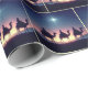 Silhuetado contra um céu noturno estrelado são três homens sábios viajando em direção a uma estrela brilhante