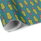 Um rolo de Giftwrap na moda, com um padrão decorativo 'tribal' em Vermelho Brilho, Verde Amarelo e Negro, em um Fundo Teal. Parte da coleção Posh & Painterly "Jungle Drums".