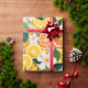 Lush, juicy, and bursting with sunshine—this citrus wrapping paper blends zesty orange and lemon slices with lush tropical leaves and blooming white florals for an energetic, summery vibe.