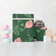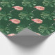 Traga um salto de paraíso tropical aos presentes para seus entes queridos, com este papel de embrulho de presente com um padrão de folha de monstera verde vibrante e um design flamingo rosa-chico.