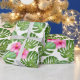 green tropical leaf and pink flower design