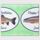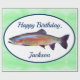 Esta truta de arco-íris colorida sobre um fundo azul esverdeado é perfeita para o aniversário, a aposentadoria e o mais do fisher da truta.