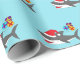 Este papel de embrulho com tubarão e presentes de Natal é perfeito para embrulhar seu presente para alguém que ama tubarões. O tubarão está vestindo um chapéu de Papai Noel. Este design de tubarão é um dos meus primeiros designs e um dos meus favoritos. O design é personalizável.