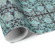 impressão de flor de pénia bonito em turquesa e preto com design de folha escrolly. Derivado de um padrão antigo de vaso.