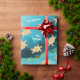 Tartarugas tribais ouros num fundo branco de turquesa aquamarina. Com os textos de saudação de Natal do Havaí de Mele Kalikimaka. Os textos sobre esses objetos podem ser mudados para a saudação havaiana de Aloha para refletir o espírito de união, bondade, amor e compaixão.