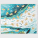 Papel De Presente Turquesa de Tinta do Mar Dourado | Mele Kalikimaka