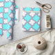 Papel De Presente Turquesa e Padrão Geométrico Branco