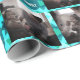 Molhando papel com um padrão de três fotos que você pode personalizar, junto com um plano de fundo muito elegante de turquesa. O impressão ao estilo mandala com formas hexagonais torna o papel diferente. Além disso, você pode colocar de quem é o presente, seja ele pessoal ou enviado pela sua família. O modelo está configurado para exibir as fotos em forma redonda.