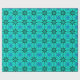 This striking wrapping paper features a bold turquoise and blue kaleidoscope fractal pattern arranged in a seamless geometric repeat. Intricate symmetrical shapes and layered textures create a dramatic design that blends abstract symmetry, psychedelic color, and modern digital art into a vibrant decorative pattern.