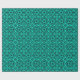 This striking wrapping paper features a bold turquoise and blue kaleidoscope fractal pattern arranged in a seamless geometric repeat. Intricate symmetrical shapes and layered textures create a dramatic design that blends abstract symmetry, psychedelic color, and modern digital art into a vibrant decorative pattern.