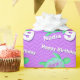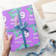 Papel de embrulho de aniversário em roxo brilhante e verde com um design de tartaruga marinha nadadora. Personalize este artigo de aniversário da tartaruga com o nome e a idade do seu filho. Atualmente, lê Feliz Aniversário Nadia 9 hoje. Ideal para jovens tartarugas ou criaturas marinhas ou fãs da vida selvagem. Design e tartaruga cardíaca bonita pintada em aquarela por Sarah Trett.