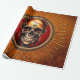 Um crânio cuja presença inspira admiração e fascínio. Seu crânio é marcado pelo tempo, carregando um tesouro radiante em seu centro, uma pedra preciosa que pulsa com cores brilhantes e guarda o segredo da vida e da morte. As tomadas oculares do crânio brilham como dois carvões brilhantes, vermelho vivo e perfurando, como se eles pudessem ver os segredos mais profundos da alma. Uma coroa de folhas de filigre, cujas veias verdes contrastam com o osso pálido. Este abraço vivo simboliza o eterno ciclo da vida e da morte, enquanto uma cadeia articamente trabalhada a rodeia - um sinal da ligação inseparável entre os mundos.