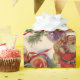 Vintage olha papel embrulhando ornamentos e Papais noeis em cores divertidas.