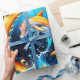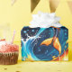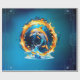 Uma fascinante interação entre fogo e água. Um golfinho salta elegantemente no meio desse impressionante contraste de fogo e água. Sua pele de prata brilha à luz das chamas e da água.