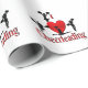 Belo design com um coração central rodeado por líderes de torcida em várias poses de torcida.