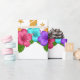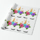 O design original do unicórnio com o chifre bonito do ouro, as estrelas, as orelhas e cor-de-rosa bonito, roxo e cerceta floresce.