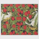 Pintura do Unicórnio de Natal com flores de poinsettia vermelha e folhas verdes sobre fundo escuro.