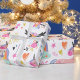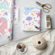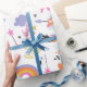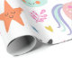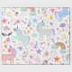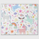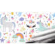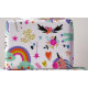 Padrão sem costura com Unicórnios, Estrelas, Corações, Arco-Íris, Nuvens, Flores, Setas, Corvos e Pássaros sobre fundo branco.