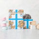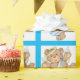 Um urso anjo adorável com fundo azul é apresentado neste papel de embalagem de presente. design perfeito para embalar presentes para chás de fraldas, o novo bebê, aniversários infantis e também para ursinhos de peluche e amantes de anjo!