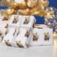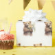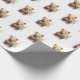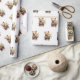 Urso castanho-branco com buquê de flor sobre fundo branco.