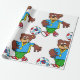 Enrole seus presentes com personalidade usando este papel de embrulho de cartoon. O design colorido apresenta um urso alegre em chute de médio, fazer ideal para aniversários, festas esportivas ou qualquer celebração para jovens fãs de futebol. Uma maneira divertida e única de fazer seus presentes se destacarem.