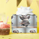 Um panda alegre vestindo um arco e flores gira um aro colorido de hula arco-íris enquanto veste uma pequena saia pregada e calçados de sela.