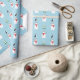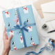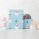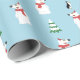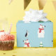 Um pinguim e um urso polar vestindo um cachecol e chapéu num padrão repetitivo com pinheiros cobertos de neve espalhados por todo o lado.