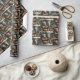 Aproveite este adorável papel de embrulho para as suas festas de Natal. Este desenho de telhas caídas de "Ursos de Natal" fica perto de uma árvore de Natal decorada usando suéteres. O urso maior está segurando uma caneca enquanto se senta ao lado de uma pilha de presentes com uma vela soltando fumaça.