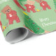 Esta árvore de Natal moderna e ursos de pelúcia no papel de embalagem de pijamas de Natal tem um padrão de três ursos de criança em gros de natal ao lado de uma árvore de Natal com as palavras Feliz Natal em branco, tudo num fundo verde. Um papel festivo bonito para embrulhar presentes para um chá de fraldas de inverno ou Natal.