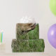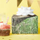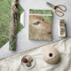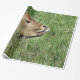 Um lindo bezerro bonito deitado em erva longa com sua língua saindo.