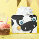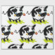 Uma vaca branca e negra adorável com uma flor na boca. Este design parece realmente eficaz nestes papéis de enrolamento