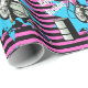 Papel cor-de-rosa e preto do piloto do tambor da vaqueira da listra do feliz aniversario de papel de embrulho.