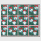 Diferentes poses de cowboys e cowboys com cordas sobre fundo azul claro e Árvore de Natal com ornamentos azuis e arcos vermelhos. Parte do fundo deste papel é impressão azul de brilho FAUX. Não há brilho real. Veja este design em outros itens de feriado na Loja de Dias de Rodeio.
