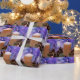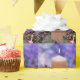 Vela de Natal com decorações e pinto roxo ao fundo.