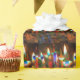 Fotografias originais das velas e das luzes da bolha, collaged em um cartão brilhante, colorido do feriado.