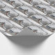 Um celeiro rústico é enfeitado com uma coroa festiva de Natal contra um pano de fundo de neve suavemente caindo