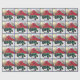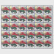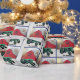 O trator verde favorito de um agricultor está estacionado em frente a um velho celeiro vermelho na neve.